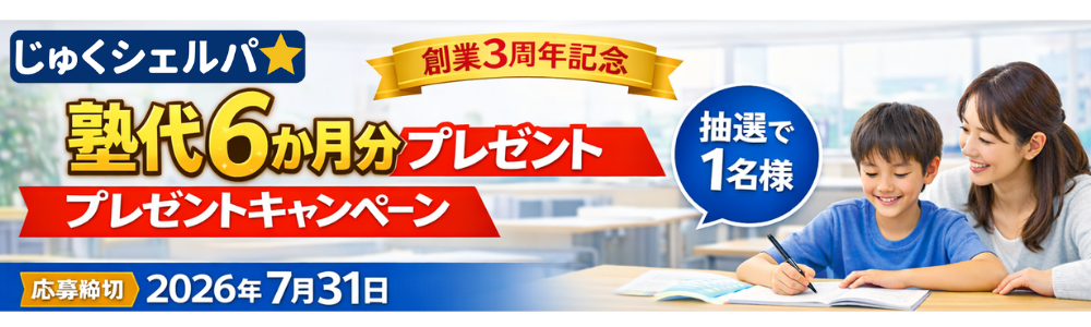 入塾後3か月継続して紹介された塾に在籍されていた場合、じゅくシェルパから入塾お祝いギフトを差し上げます。
