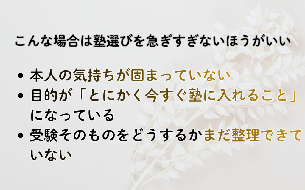 こんな場合は塾選びを急ぎすぎないほうがいい