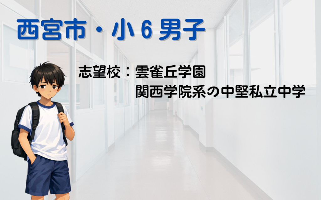志望校は、雲雀丘学園・関西学院系の中堅私立中学。