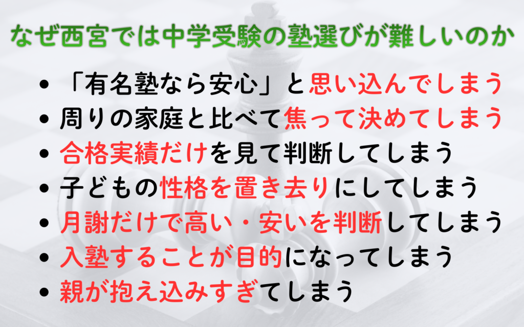 西宮の中学受験塾選びでは、塾の名前ではなく、