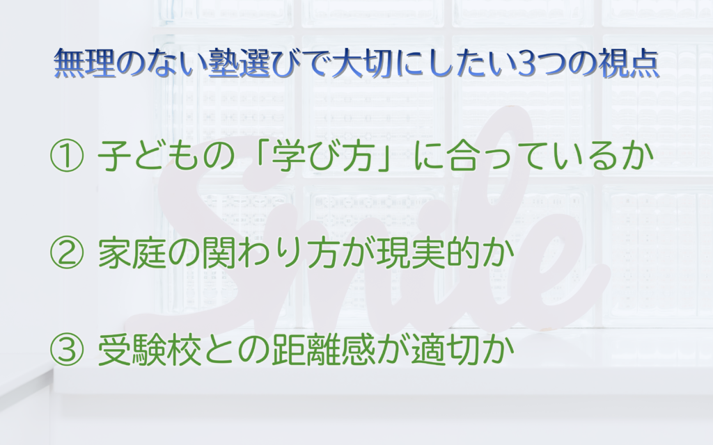 無理のない塾選びで大切にしたい3つの視点