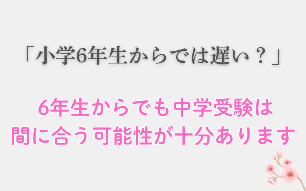 「小学6年生からでは遅いのでは?」と不安に感じる方も多いですが、