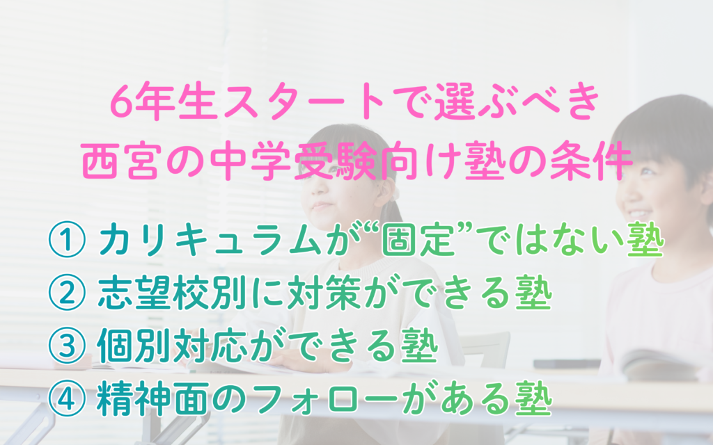 6年生スタートでも後悔しない、西宮の中学受験向け塾選びの考え方を解説します。