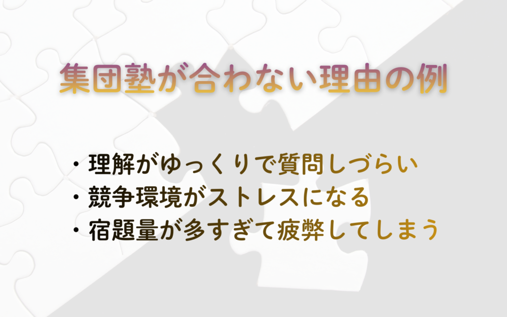 個別指導が合いやすいのは、例えば次のようなタイプです。