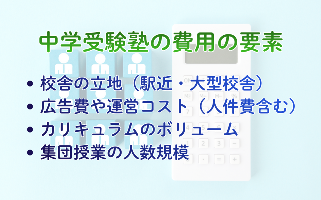西宮の中学受験塾の費用は、以下の要素で変わります。