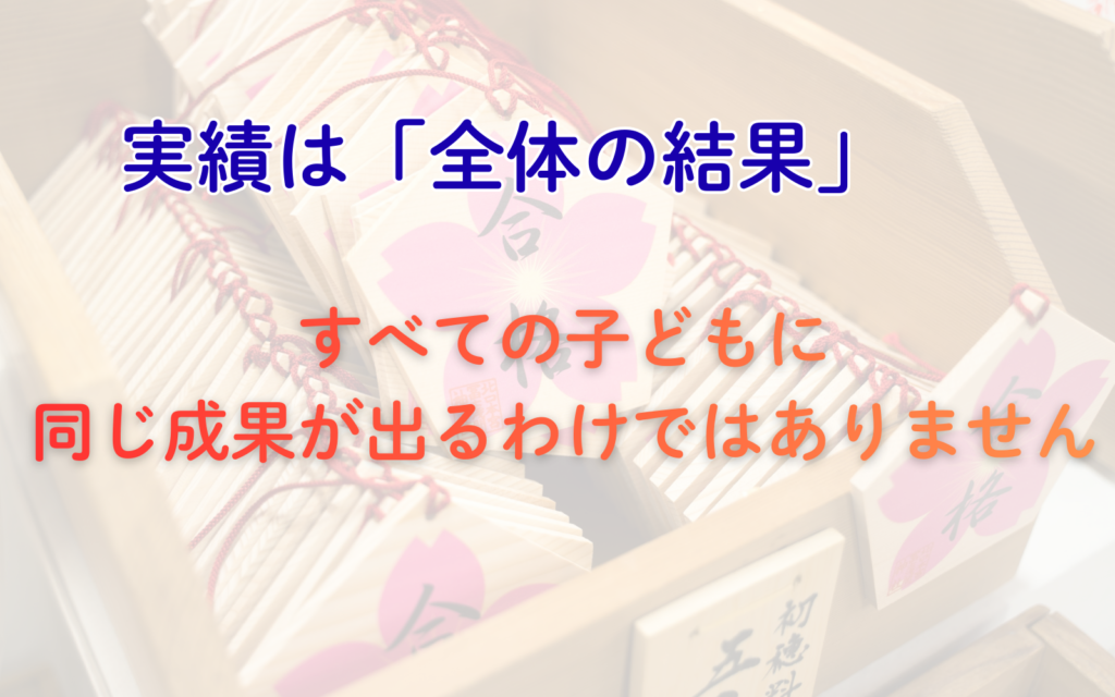 しかし、実績は「全体の結果」であり、すべての子どもに同じ成果が出るわけではありません。