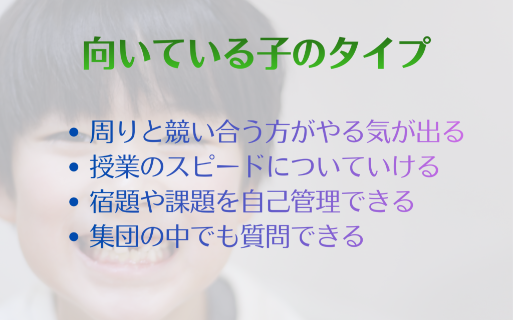 この場合、個別指導や少人数指導の方が合うケースも多いです。